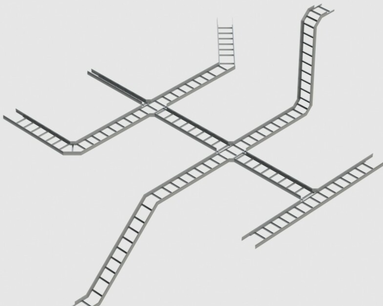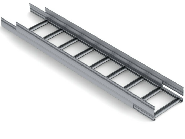 Лестничный лоток – тип кабельного лотка (как правило построенный на системе профилей), напоминающий лестницу. Обычно используется для больших нагрузок. Обладает облегченной конструкцией, при повышенной жесткости.