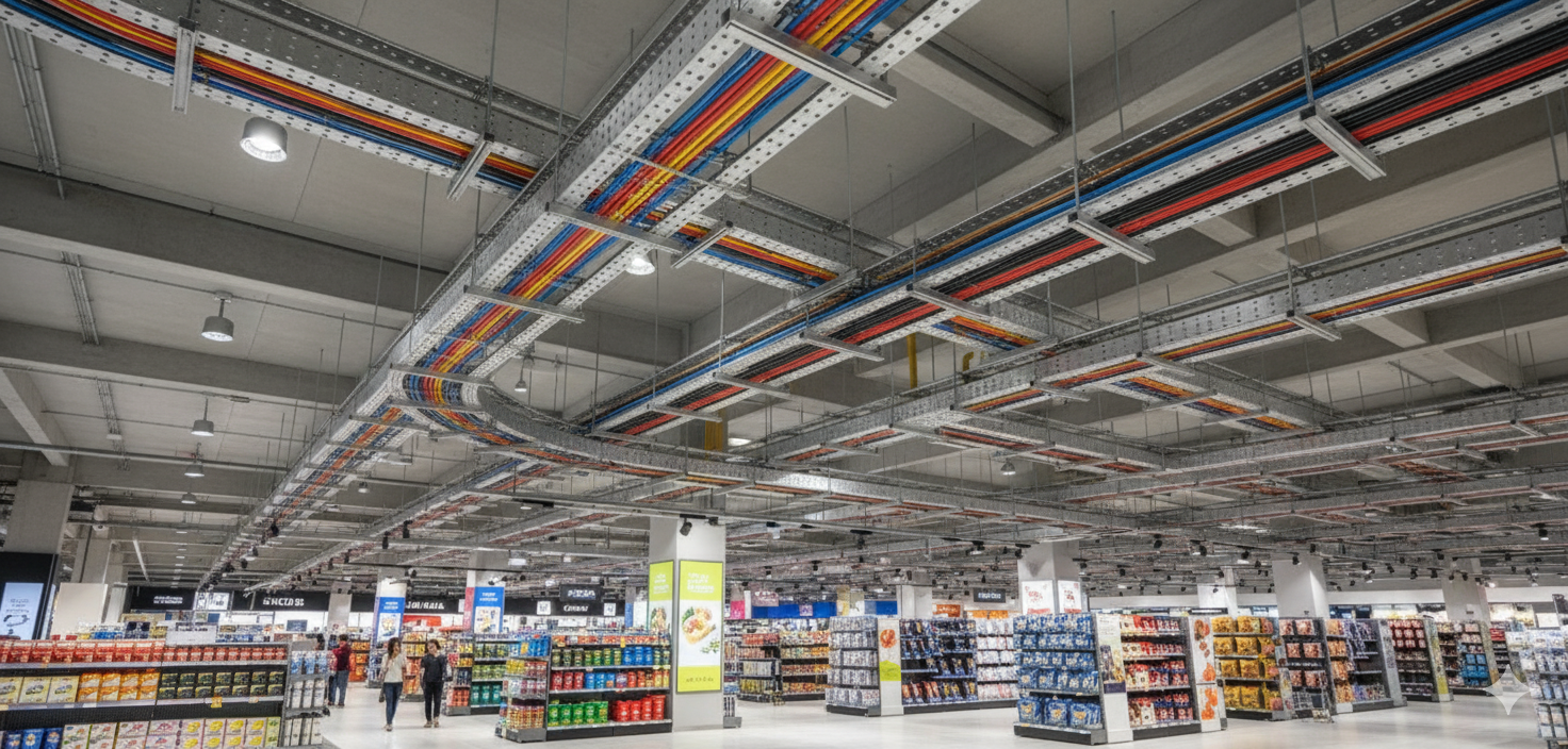 Кабели в таких энергетических лотковых системах удобно как прокладывать, так и обслуживать.